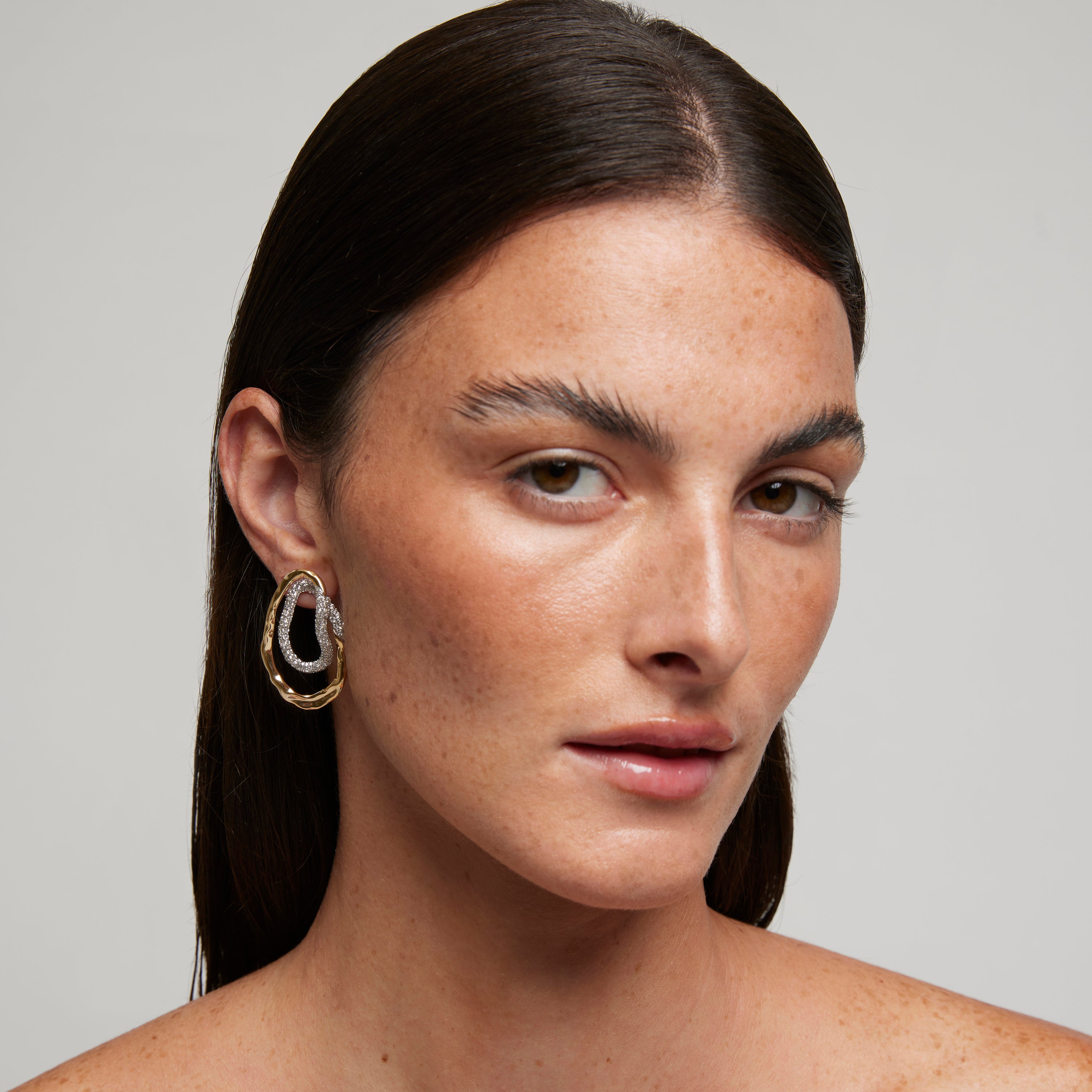 Linee irregolari e forme fluide danno vita alla collezione SOGNI Scolpiti, che celebra la bellezza autentica nata dall’incontro tra creatività e materia. Ogni gioiello racchiude la forza del gesto artigianale, superfici dorate e pavé luminosi si intrecciano in curve scolpite che riflettono la luce, creando un’armonia unica tra rigore e libertà.